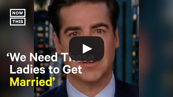 The Daily Caller weighed in with a headline lamenting, “Are lonely wine Karens ruining our country?” And Fox News host Jesse Watters discovered another terrible problem: It’s bad enough that all those liberal single women vote, but they’re also working as teachers and poisoning the minds of impressionable kiddies.