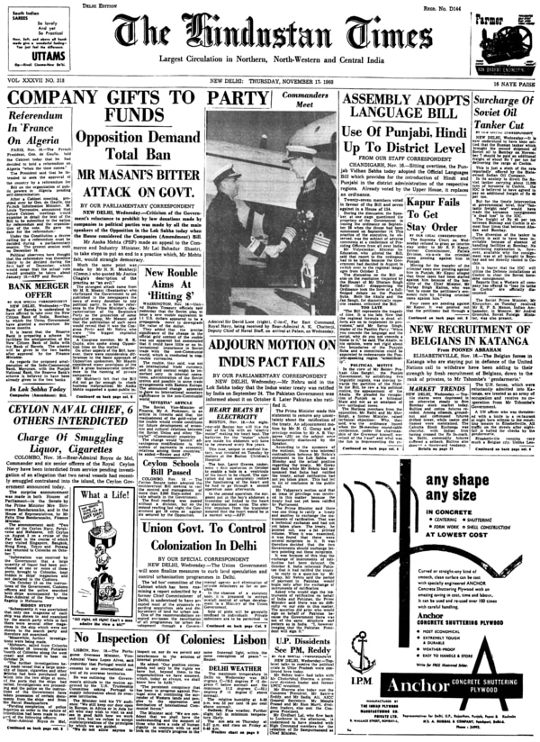 HT This Day: Nov 17, 1960 Company gifts to party funds (Click to expand) Criticism of the Government’s reluctance to prohibit by law donations made by companies to political parties was made by all the main speakers of the Opposition in the Lok Sabha today when the House considered the Companies (Amendment) Bill. Read more. |