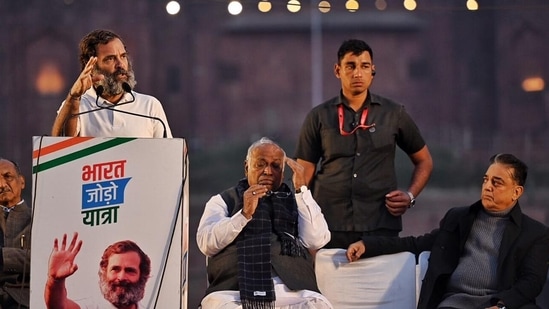 | THE BIG STORY Bharat Jodo in Capital: Rahul takes aim at BJP Congress leader Rahul Gandhi on Saturday accused the Bharatiya Janata Party (BJP) of spreading communal hatred and trying to divide people on the lines of religion, a remark the 52-year-old made at the Red Fort after he led the Bharat Jodo Yatra through key areas of the national capital. Read more. |