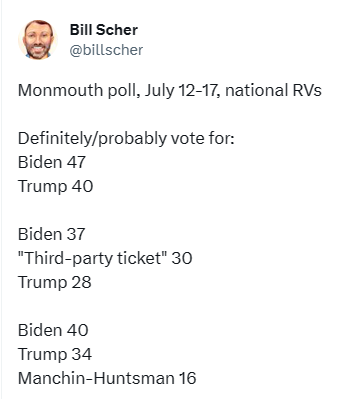“The expectation that a third-party run could tip the scales toward Biden might produce a tighter contest than when the spoiler effect is seen to help Trump. Again, these are hypotheticals. It’s impossible to predict the impact of a third-party challenge until an actual campaign is underway, when the media’s framing of it will play an important role,” said Murray.