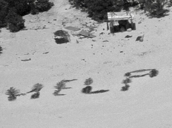 What you're looking at is essentially a scene that saved three lives. The U.S. Coast Guard and Navy recently rescued three sailors who had been stranded on a small Pacific island for over a week after they spelled "help" in the sand with palm tree leaves. "This act of ingenuity was pivotal in guiding rescue efforts directly to their location," said Lt. Chelsea Garcia, the search and rescue mission coordinator. The sailors -- all three are men in their 40s -- left Easter Sunday on a 20-foot skiff from two small Pacific islands that make up the Micronesia archipelago, the Coast Guard said. NPR's Ayana Archie reports that six days later a woman called the Coast Guard to report that her uncles had not returned home, triggering the search. The men returned home on Tuesday. |