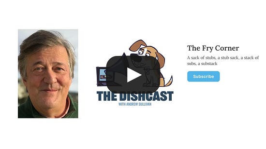 Browse the Dishcast archive for an episode you might enjoy (the first 102 are free in their entirety — subscribe to get everything else). Coming up: Jeffrey Toobin on the Supreme Court, Anne Applebaum on autocrats, Eric Kaufmann on reversing woke extremism, and Bill Wasik and Monica Murphy on animal cruelty. (Van Jones’ PR team canceled his planned appearance.) Please send any guest recs, dissents, and other comments to dish@andrewsullivan.com.