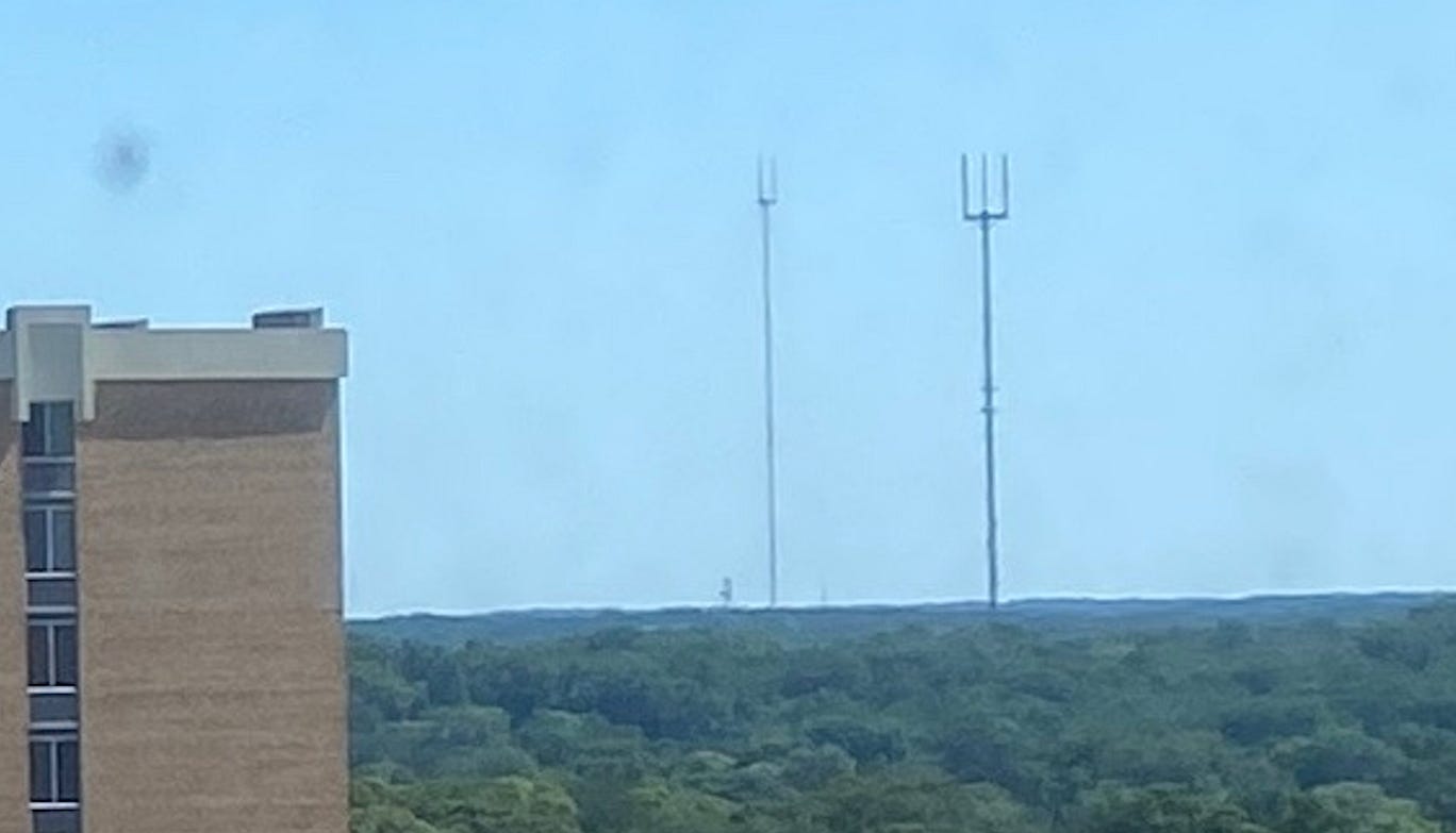 Still, this information isn’t helpful. I also learned that forked TV transmission masts like those two in the distance are known as “candelabra towers.” Again, not helpful.