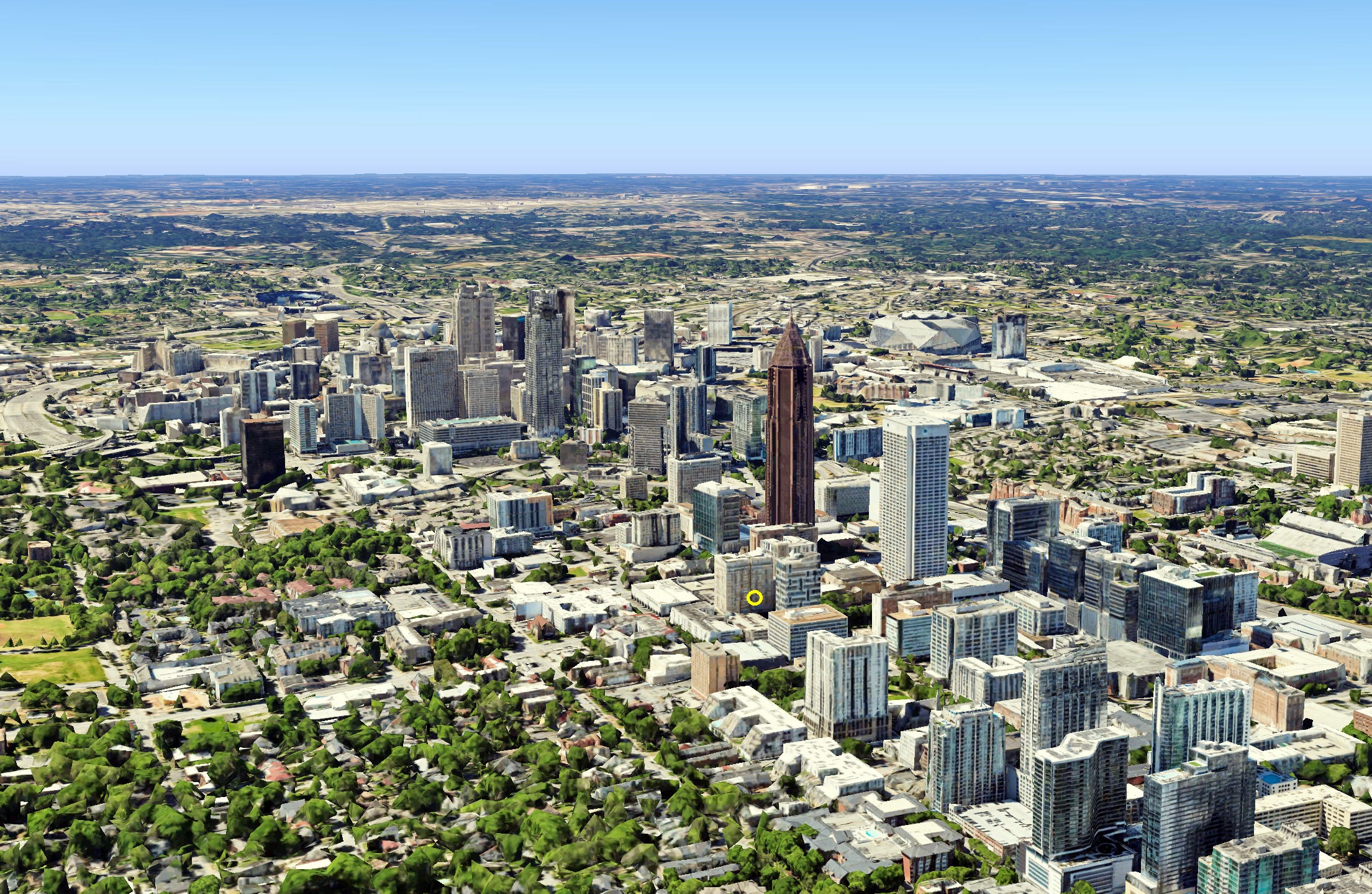 This was a tough one! All I had to start with was a major American urban center and the southeastern vibes I got from the trees. I turned to Google Earth to see if I could spot a skyscraper with that dome seen in the reflection. I worked my way from south to north along the Atlantic seaboard and tried Jacksonville, Tallahassee, Savannah, and Charleston all before reaching the right. All that took quite a while.