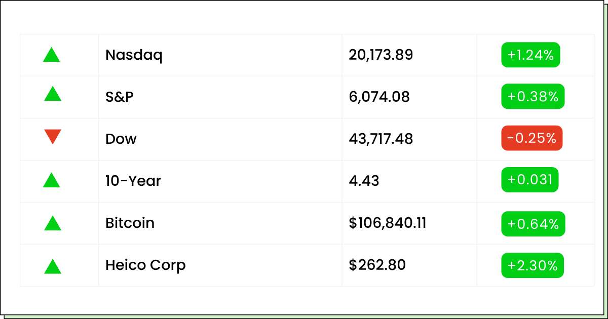 | | What to Watch | Amentum Holdings (AMTM), Cheetah Mobile (CMCM), and Heico (HEI) will report their earnings before the opening bell today. | U.S. Retail Sales for November will be released at 8:30 a.m. ET, offering a snapshot of consumer spending trends. Industrial Production and Capacity Utilization for November will be published at 9:15 a.m. ET. | At 10:00 a.m. ET, the Home Builder Confidence Index for December will provide insights into the health of the housing market. | In the evening, Worthington Enterprises (WOR) will announce its quarterly results after the market closes |