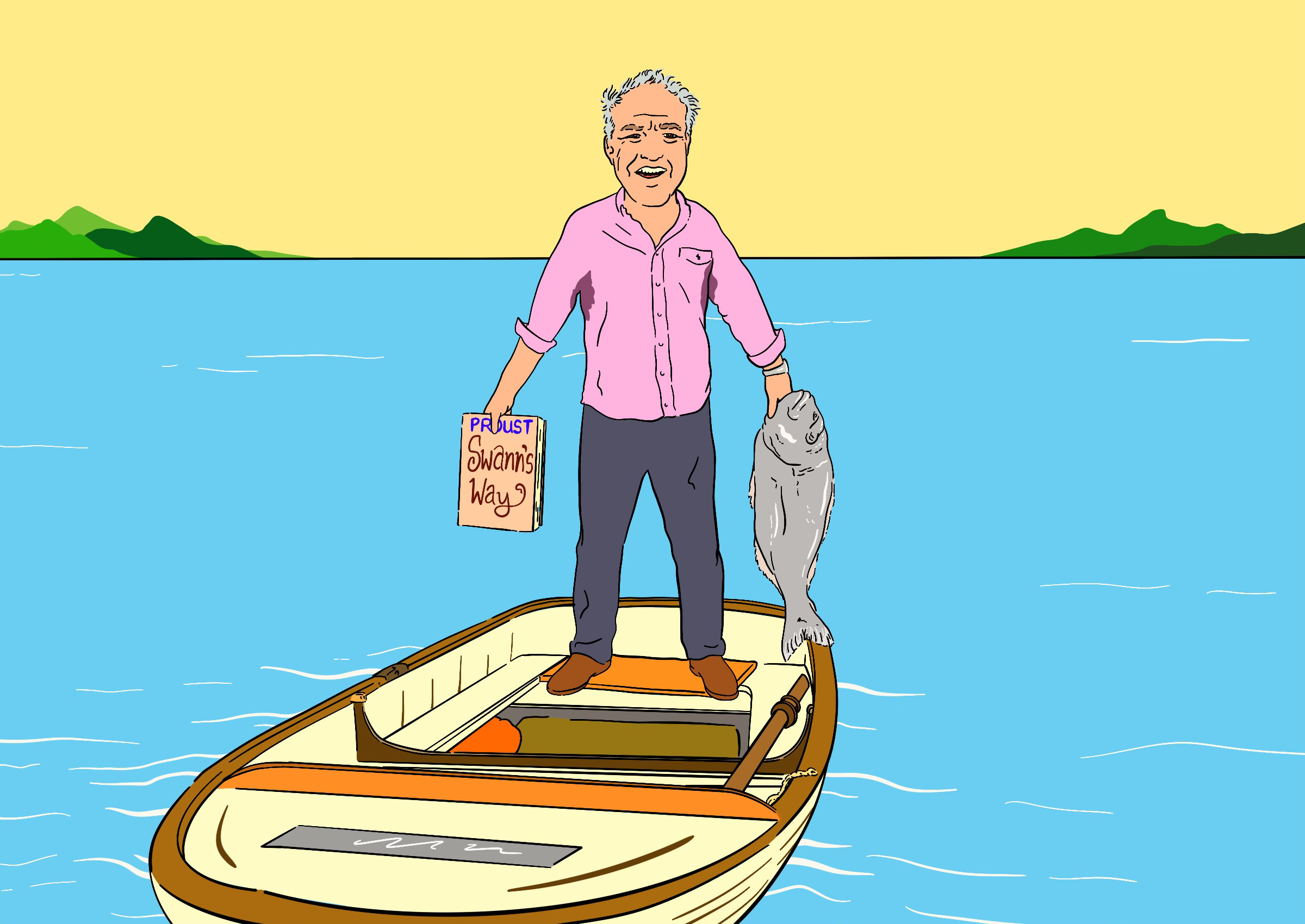 Rick Stein’s OddityJohn Merrick on the strange allure and bumbling anti-charisma of Rick Stein. Illustration by Alex Brenchley. Last year, my partner and I had our first child. It was a difficult birth, and things did not get easier in the first few months. I’m not sure exactly how much sleep I got, but it wasn’t much. ‘A father,’ Joyce writes in Ulysses, ‘is a necessary evil’, a line I’ve long adored, and now I was one: an experience far stranger and more intense than I ever imagined. Beyond the blinding, terrifying immediacy of having to care for this brand-new thing, so fragile and small, much of that period is now a blur to me. But one of the few more-or-less-clear memories I have is of watching endless hours of Rick Stein – particularly his early BBC shows like Fruits of the Sea (1997) and Seafood Odyssey (1999) – at unholy times of the night while trying to calm our screaming, colicky daughter. I’ve watched a lot of Stein over the years, but I hadn’t seen those series since they’d first aired. When the intro started, with the crash of waves against shore and the monotonous drone of the shipping forecast soundtracking shots of Chalky, Rick’s Jack Russell, tearing across dun-coloured Cornish beaches, I experienced the most powerful flood of childhood memory, of grey weekend evenings in the front room of my grandparents’ two-up two-down in Crewe. Whole worlds were contained in that thirty-second sequence. If I were feeling pretentious, I might even say it was Proustian. Shoehorning in a reference to Proust (and, indeed, to Joyce) is something Rick himself would be proud of. There’s an episode of Rick Stein’s French Odyssey (2005) in which he takes a barge along the Garonne from Bordeaux to Toulouse before sailing down the Canal du Midi to the Mediterranean, where, while cooking madeleines, he scolds his crew for not having read the famous French novelist. ‘I find this very difficult to believe,’ he says, while cracking eggs into a bowl, ‘but none of the crew had read À la recherche du temps perdu. Quite amazing, really!’ In the end, Stein’s madeleines look a little flat, but he serves them with big dollop of ice cream and honey-poached peaches as the camera lingers on a scraped-clean plate: ‘The film crew may not know about Proust,’ he says, as cutlery clatters against china, ‘but they do know what they like.’ Twenty years later, I can think of few moments that better encapsulate the infuriating but somehow compelling aura of Stein, 78, who has been a regular fixture on British cooking shows for the past forty years. Although he’s had a series out as recently as last year (Rick Stein’s Food Stories), these days he’s almost a figure out of time: the definition of pale, male, and stale, and one of the few remaining stalwarts of old-school British food broadcasting – as distinct from both Nadiya Hussain or Jamie Oliver as you could imagine. I’ve been recounting the Proust scene for years whenever I talk about Stein’s work. The slightly superior knowingness, the clumsy literary reference, are just so him (for a time, I even got in the habit of counting the quotes from novels forced into his shows – Graham Greene, John Betjeman, J B Priestley; all a bit naff and anachronistic). But perhaps it’s his quotation of Rudyard Kipling in Rick Stein’s India (2013), the most Steinian of his shows, that best conveys the essence of Rick. ‘Kipling, in his poem to Bombay,’ Stein tells us, ‘talks of the people here who traffic most up and down but cling to the city’s hem as a child to their mother’s gown.’ It’s as if he’s spawned directly from the pages of Kim, striding forth among the natives like a low-level colonial functionary, with his public-school accent and crumpled button-down, seemingly completely unaware of just how patronising he is to the people he meets and about the food they make. The working class of India, he tells us in one episode, are ‘so poor and yet so happy’, and barely a second of screen time is wasted before he tells us that curry – ‘the most interesting thing about India … first, second and last’ – is a generic term, used mainly by Brits, for something with myriad names in the subcontinent. It’s not just the Indian series that is filled with such clangers. In Seafood Odyssey, Stein contemplates what makes chefs like him tick. He describes himself as a ‘magpie’, ‘going all over the world and taking ideas from everywhere else, which is what the British have done forever, and bringing them back’ – one of the better euphemisms for the horrors of empire that I have heard. In another episode, filmed in Cambodia (as part of 2009’s Rick Stein’s Far Eastern Odyssey), Stein ruminates on the country’s violent history. ‘They’re such a civilised people,’ he says, ‘so sophisticated, the food is so special. They’re so nice, so beautiful. How could something like the Khmer Rouge and that terrible time in the seventies have happened?’ His guide reminds him that it’s probably got a lot to do with the clandestine American bombing campaign of the otherwise neutral country during the Vietnam War, a grotesque act of state terror that killed countless thousands of Cambodians. But no, surely the women are too beautiful for that sort of thing? Why I should turn to Stein for comfort, then, is something of a mystery. He displays the kind of unthinking sexism and, if not overt racism, then at least the kind of unconsciously biased elitist condescension you might expect of a man of his age, race, and class. It’s hardly the kind of thing you’d expect to grip a lefty 30-something. Nor is his onscreen presence particularly winning: a bulging, bibulous figure, red in the face and sweating through a salmon Oxford, wending his way through various kitchens and eateries around the world, scratching down recipes in his black notebook before, with grinding inevitability, turning to