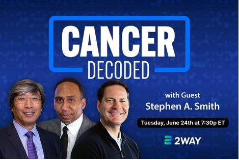 YouTube: https://www.youtube.com/@NextUpHalperin “CANCER DECODED” Returns“Cancer Decoded”—hosted by Dr. Pat Soon-Shiong and me—returns LIVE on Tuesday at 7:30pm ET. Stephen A. Smith, veteran sports broadcaster and commentator best known for ESPN’s First Take, joins us to share his personal experiences with loved ones and colleagues affected by cancer. These conversations are never easy, but they are important. We hope you will join us. Watch LIVE by Zoom here. You can watch it on YouTube LIVE here. You’re currently a free subscriber to Wide World of News. |