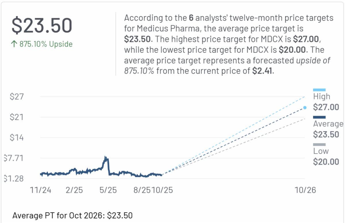 In fact, with an average target of $23.50, MDCX could have over 850% potential upside from its closing valuation last week.