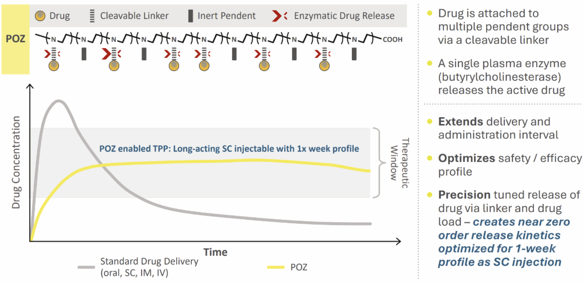 This POZ technology enables enhanced control over drug loading and allows for more precise management of drug release rates.