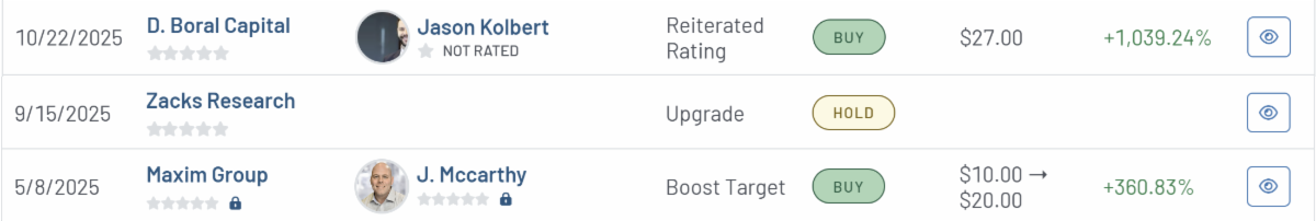 | From Thursday's close, the D. Boral Capital and Maxim Group targets project a potential upside of over 9,000% and 600%, respectively.