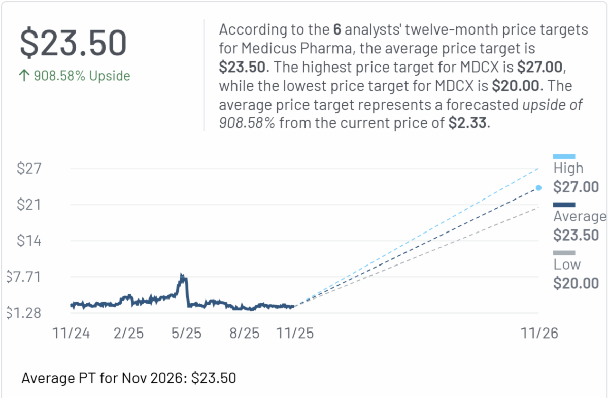 No. 3 MDCX Potential Catalyst - An Average Of 6 Analyst Targets Suggest Major Upside Potential (Triple-Digit!).