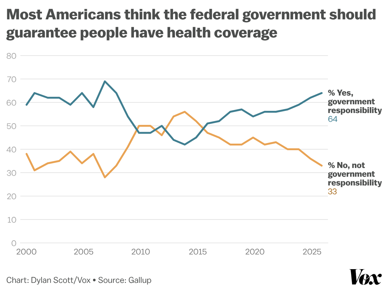 The last time Americans were this unified around the idea of the government guaranteeing health coverage was around 2008 — shortly before our last major health reform law, the Affordable Care Act, passed. The politics of health care are cyclical. It goes something like this: