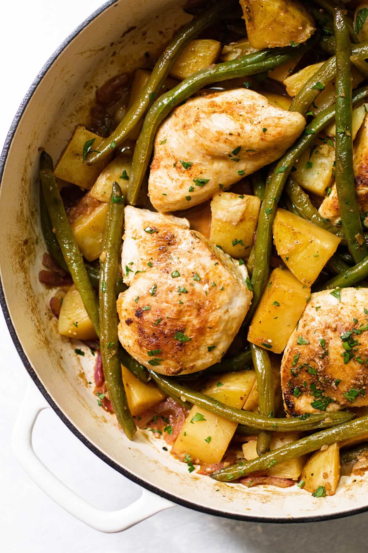 Cover the pan and simmer the chicken and vegetables for about 20 minutes or until the potatoes are fork-tender and the chicken is cooked. Recipe by Girl Gone Gourmet. |