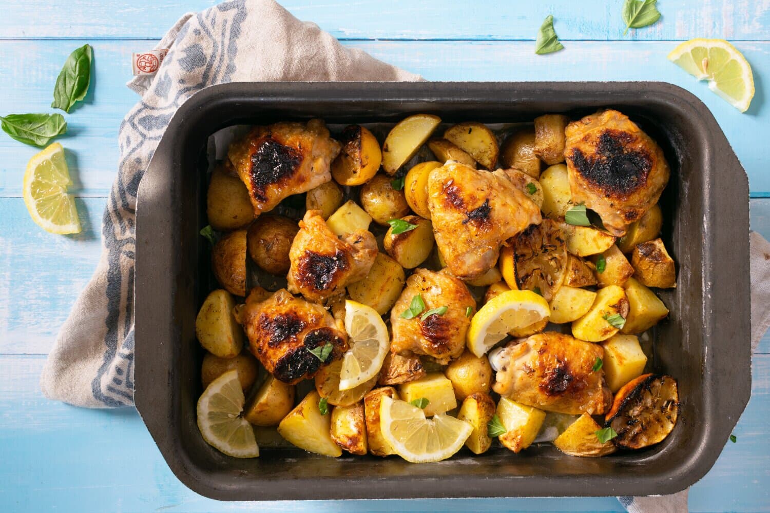 Greek Sheet Pan Chicken With Lemon & Potatoes